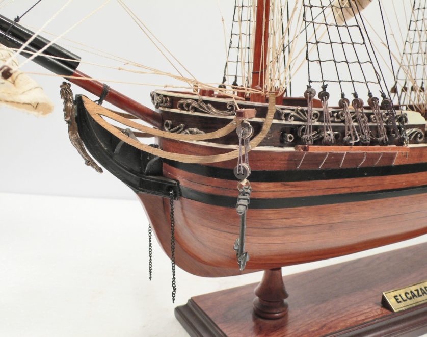 Bei dem dargestellten Schiffsmodell handelt es sich um eine maßstabsgetreue Nachbildung der El Cazador.
